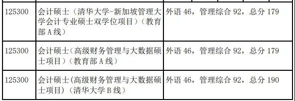 清華大學經濟管理學院2021年會計碩士(清華大學-新加坡管理大學會計專業碩士雙學位項目)擬錄取人數為30人,其中錄取最高分為231分,錄取最低分為179分,錄取平均分為202.53分。
