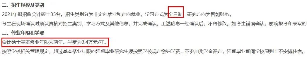 全日制:基本修業年限為兩年。學費為3.4萬元/年