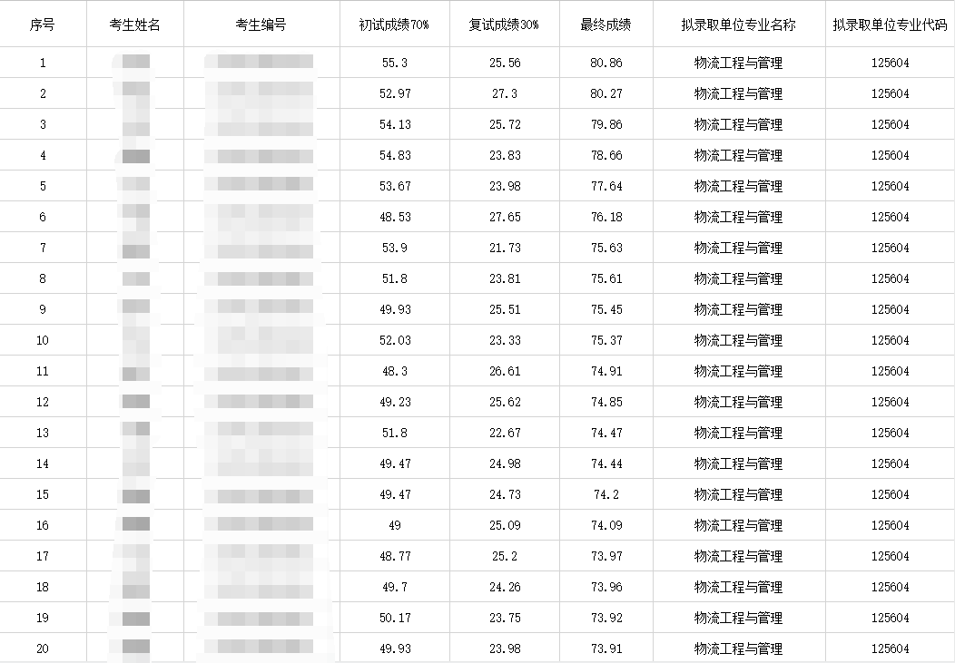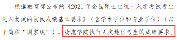 2021年復試分數線:物流學院執行A類地區考生的成績要求