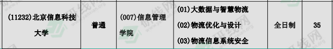 北京信息科技大學2021年物流工程與管理專業全日制擬錄取人數為35人。