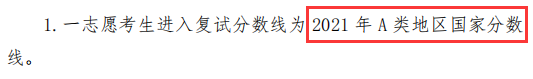 2021年復試分數線為2021年A類地區國家分數線174/86/43