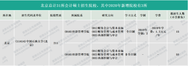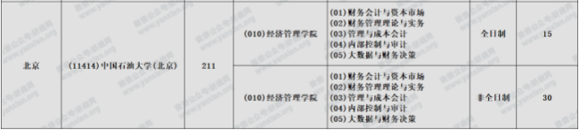 中國石油大學(北京)2021年會計專碩全日制計劃招生15人,非全日制計劃招生30人