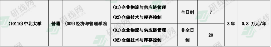 中北大學物流工程與管理專業學制為3年,學費為0.8萬元/萬元•年