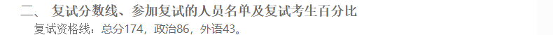 2021年復(fù)試分?jǐn)?shù)線為174/86/43
