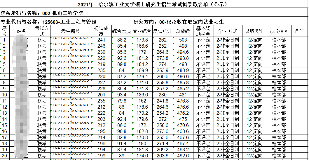 哈爾濱工業(yè)大學(xué)2021年非全日制擬錄取人數(shù)為71人。
