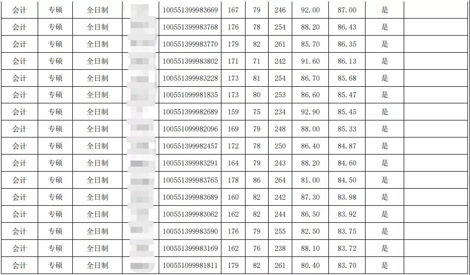 非全日制錄取最高分:249分