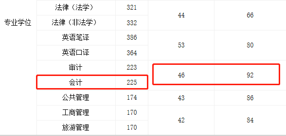 天津財經大學2021年會計專碩復試分數線為225/92/46