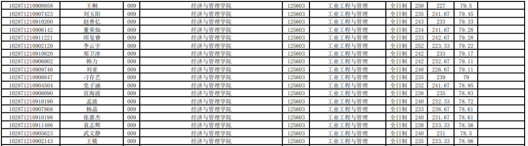 非全日制錄取最高分:222分,