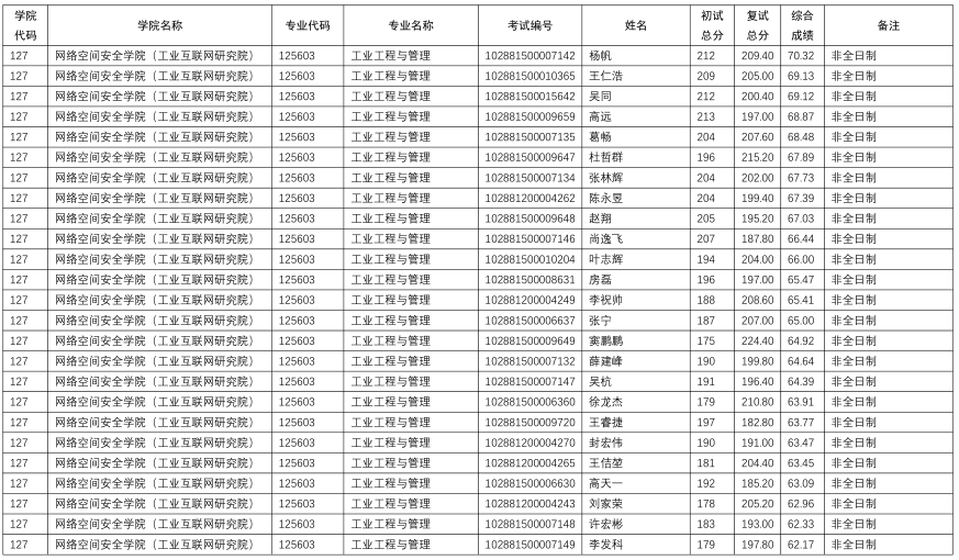 南京理工大學網絡空間安全學院2021年工業工程與管理專業擬錄取人數為非全日制30人(注:錄取人數均為一志愿)