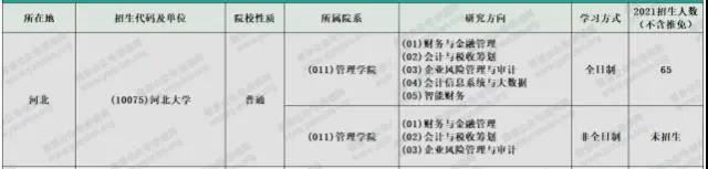 河北大學2021年全日制會計專碩計劃招生65人(不含推免),非全日制未招生