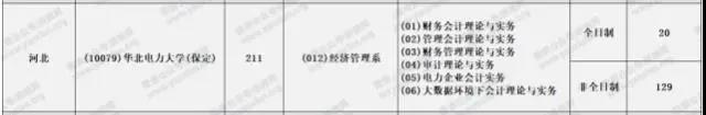 華北電力大學(保定)2020年會計專碩全日制計劃招生20人,非全日制計劃招生129人(不含推免)