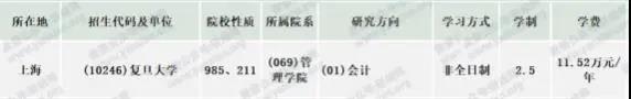 復(fù)旦大學(xué)2020年非全日制會計專碩學(xué)制學(xué)費:學(xué)制為2.5年,學(xué)費為11.52萬元/年