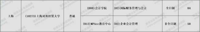上海對(duì)外經(jīng)貿(mào)大學(xué)2021年全日制會(huì)計(jì)專碩計(jì)劃招生84人(不含推免)非全日制會(huì)計(jì)專碩計(jì)劃招生50人
