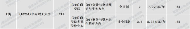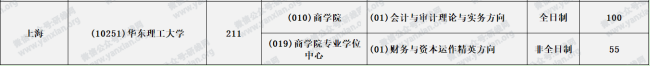 華東理工大學(xué)2021年會(huì)計(jì)專碩全日制計(jì)劃招生100人(不含推免)非全日制計(jì)劃招生55人