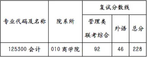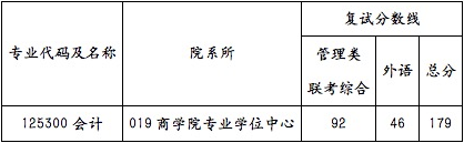 商學(xué)院學(xué)位中心會(huì)計(jì)專碩復(fù)試分?jǐn)?shù)線為:179/92/46