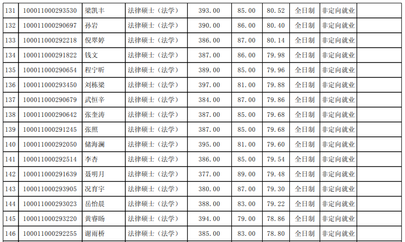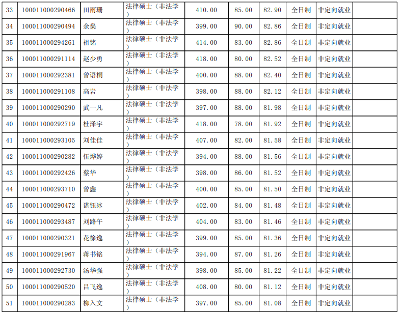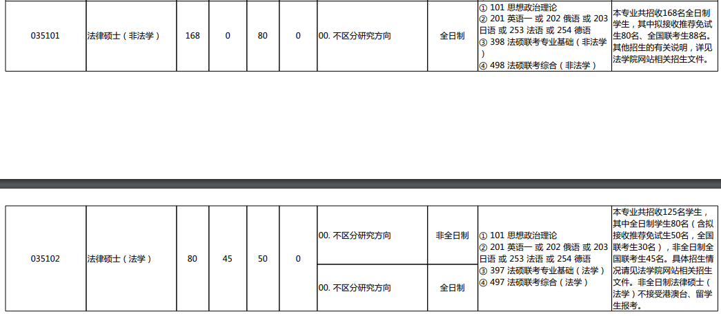 法碩(法學):全日制錄取50人。非全日制法律碩士(法學)33名。
