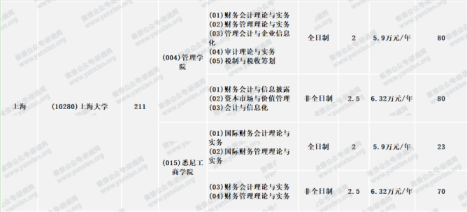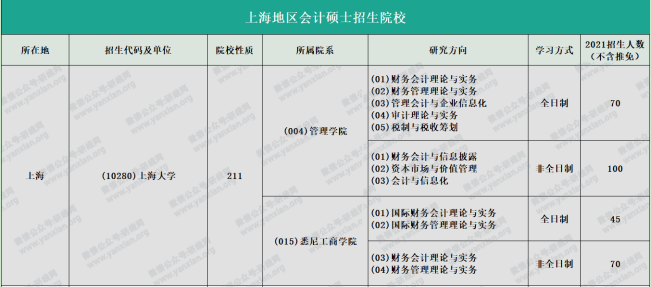 上海大學(xué)2021年管理學(xué)院全日制會(huì)計(jì)專(zhuān)碩計(jì)劃招生70人(不含推免)非全日制會(huì)計(jì)專(zhuān)碩計(jì)劃招生100人