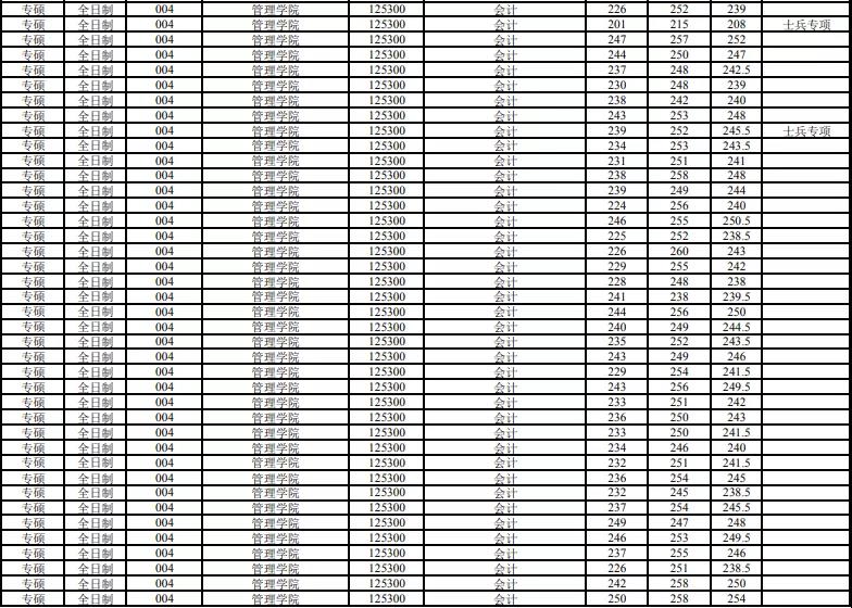 管理學(xué)院全日制錄取最高分:250分