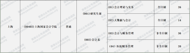 上海國(guó)家會(huì)計(jì)學(xué)院2021年研究生部會(huì)計(jì)專(zhuān)碩全日制計(jì)劃招生40人(會(huì)計(jì)理論與實(shí)務(wù)、大數(shù)據(jù)與會(huì)計(jì))會(huì)計(jì)系非全日制計(jì)劃招生56人(會(huì)計(jì)與財(cái)務(wù)管理、醫(yī)院財(cái)務(wù)管理)