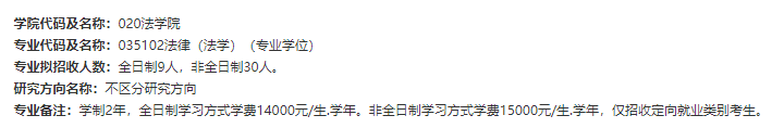 法碩(法學)非全日制:學制為2年,學費15000元/生/年