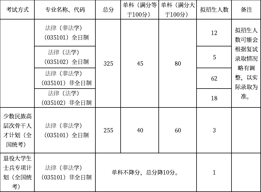 法碩(非法學)、法碩(法學)2021年復試分數線:325/45/80