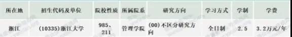 浙江大學2020年全日制會計專碩學制學費:學制為2.5年,學費為3.2萬元/年;