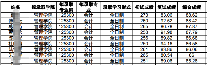 蘇州大學東吳商學院2021年會計專碩復試名單中,最低分為238分