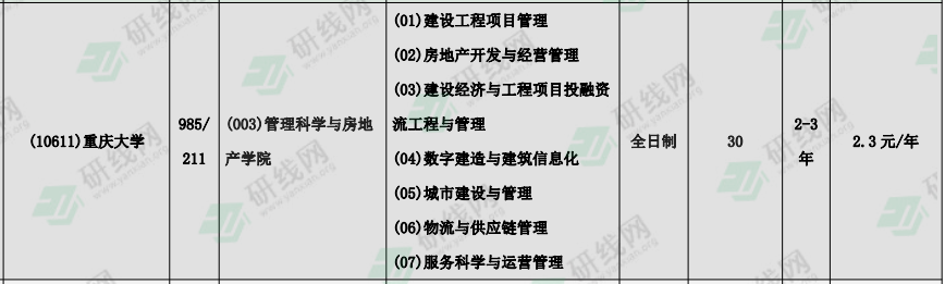 重慶大學物流工程與管理專業學制為2-3年,學費為2.3萬元/年。