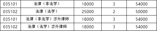 法律(非法學)全日制:學制為3年,學費18000元/學年