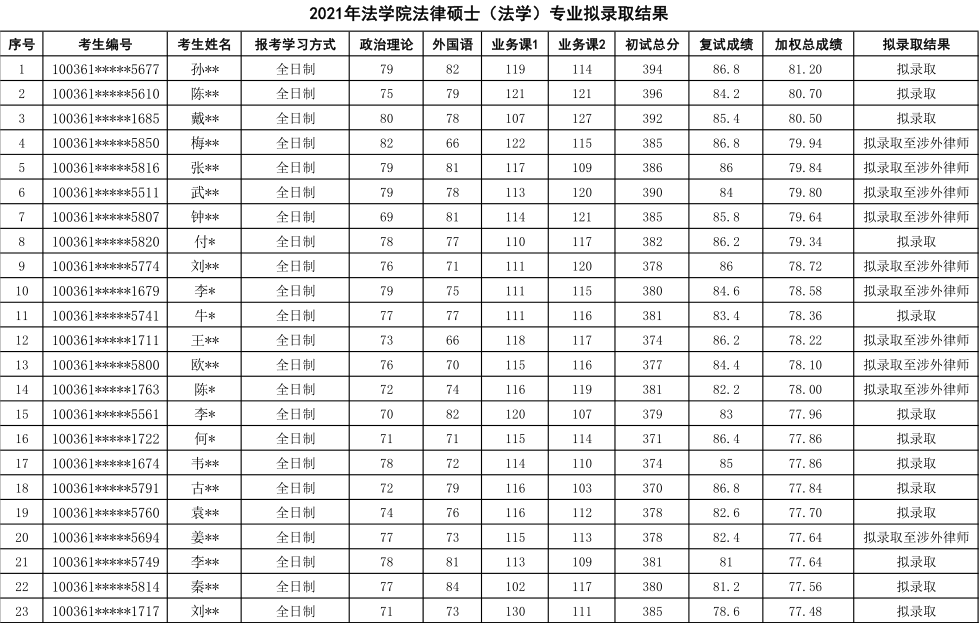 2021年法律(非法學)全日制招生人數是43人,含推免10人,