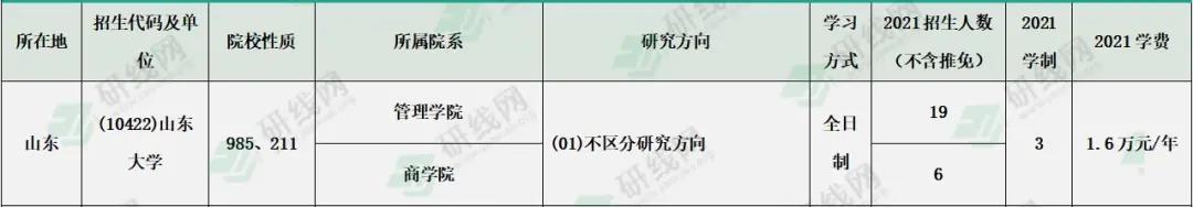 山東大學2021年管理學院全日制會計專碩計劃招生19人商學院全日制會計專碩計劃招生6人