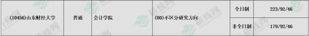 山東財經大學2021年全日制會計專碩復試分數線為223/92/46;非全日制會計專碩復試分數線為179/92/46