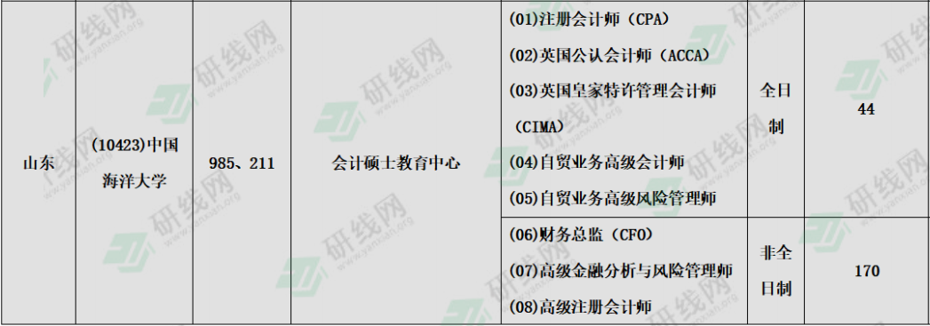 中國海洋大學(xué)2021年全日制會計專碩計劃招生44人非全日制會計專碩計劃招生170人。