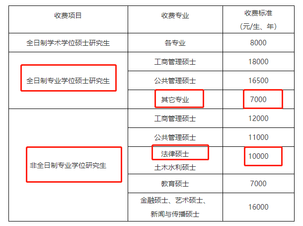 法碩(非法學)非全日制:學制為3年,學費10000元/生/年