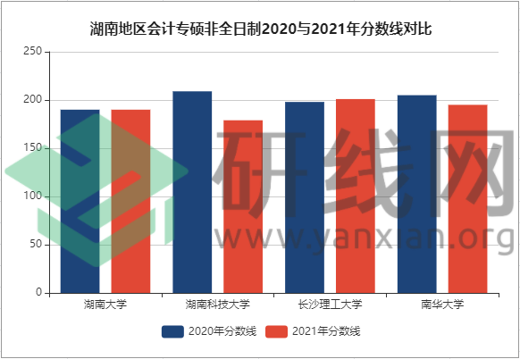 湖南地區會計專碩非全日制2020與2021年復試分數線對比如下: