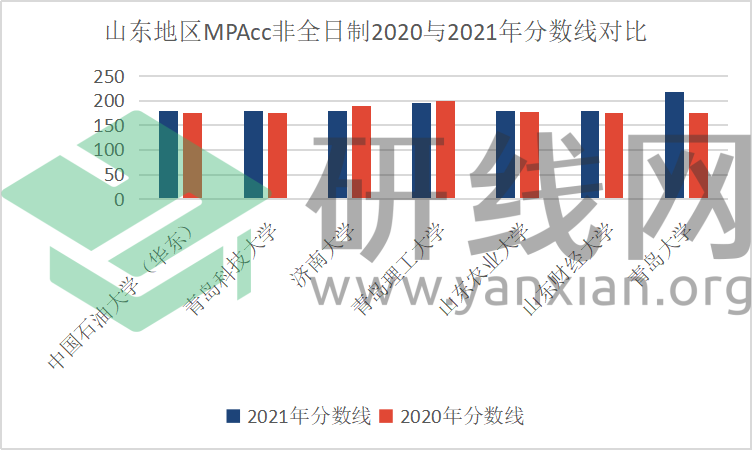 | 山東地區會計專碩非全日制2020與2021年分數線對比 | ||