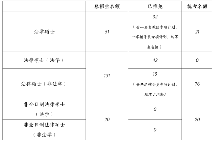 2021年法律(法學)擬招生人數是20人,非全日制錄取6人