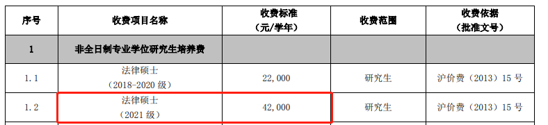 法律(法學、非法學)非全日制:學費42000元/年
