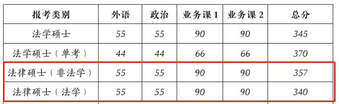 法律碩士(非法學)2021年復試分數線:55/55/90/90/357