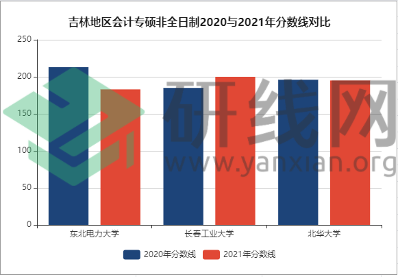 | 吉林地區會計專碩非全日制2020與2021年分數線對比 | ||