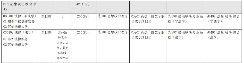 法律(法學)涉外律師方向:3年,其他法律實務方向為2 年學制