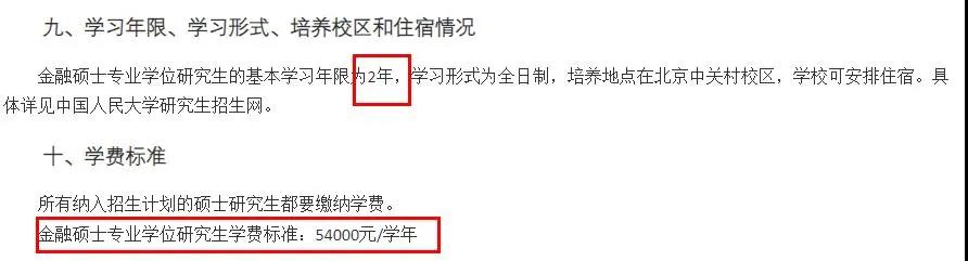 中國人民大學大學2021年金融專碩學制學費:學制為2年,學費為5.4萬元/學年