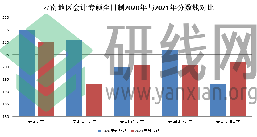 | 云南地區(qū)會計(jì)專碩全日制2020年與2021年分?jǐn)?shù)線對比 | ||