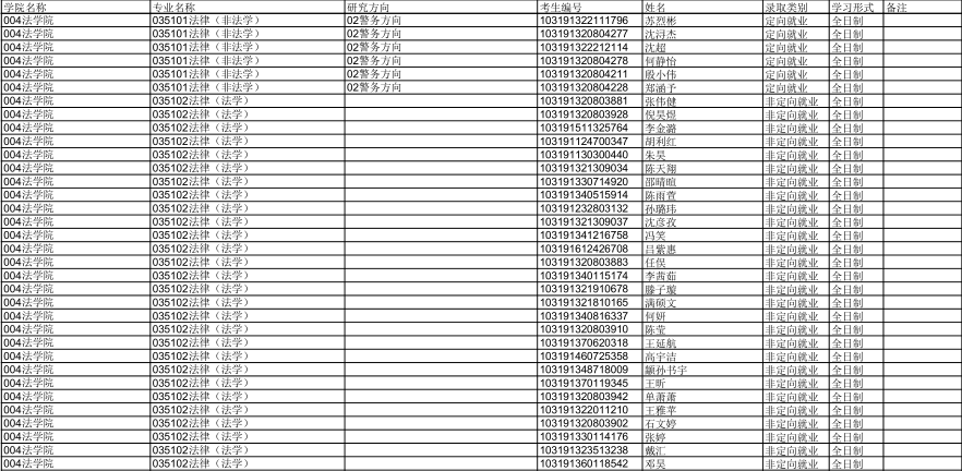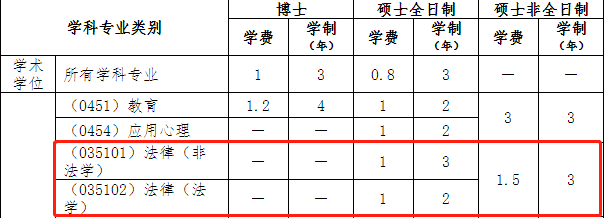 法律(非法學):非全日制學制3年,學費1.5萬元/年