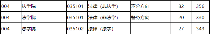法碩(非法學):復試分數線為356,其中警務方向復試分數線為330