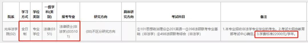 法律(非法學):全日制學制3年,學費全程66000元/生