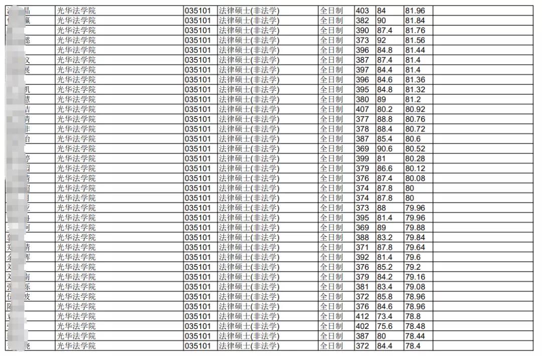 全日制法律(非法學):實際錄取73人,最高分413分,最低分364分;