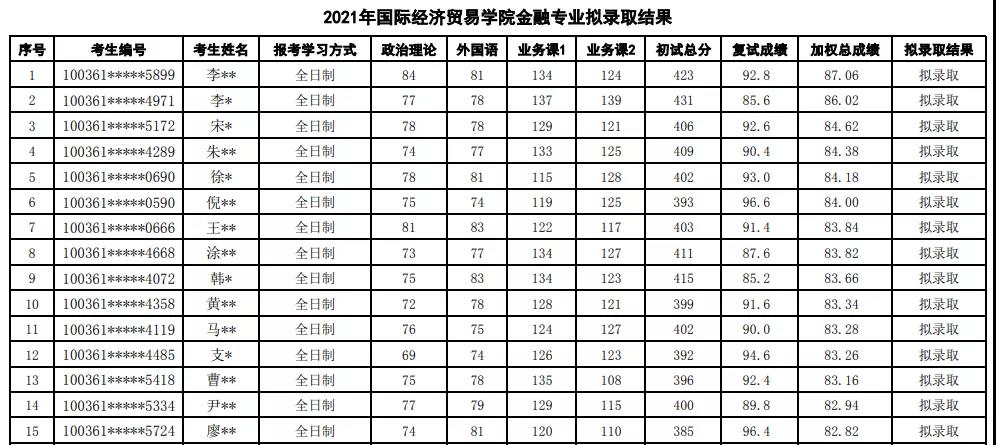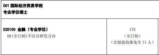 對外經濟貿易大學2021年全日制金融專碩國際經濟貿易學院擬錄取人數為127人,金融學院擬錄取人數為171人