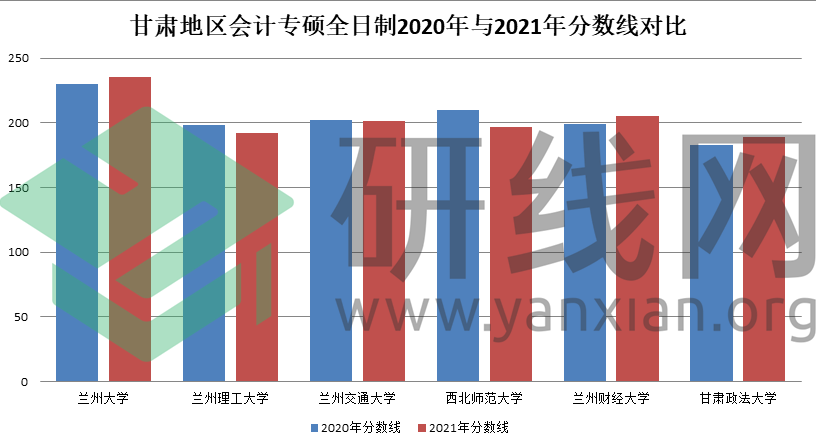 甘肅地區會計專碩全日制2020年與2021年復試分數線如下: