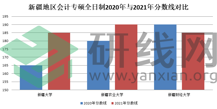新疆大學和新疆農業大學2021年會計專碩全日制復試分數線較2020年分數線明顯提高,分別提高了20分和10分